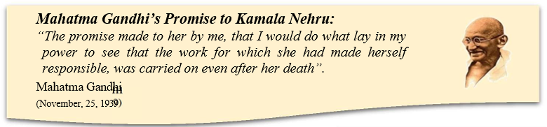 After her sad demise, Mahatma Gandhi and other national leaders like Pt. Madan Mohan Malviya, Pt. Jawaharlal Nehru, Dr.B.C.Roy, Shri Uma Shankar Dikshit took it upon themselves to ensure that the work for which Kamala Nehru made herself responsible was carried on even after her death.