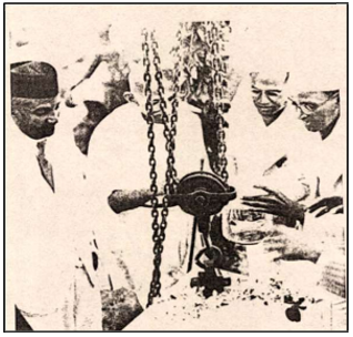 Gandhiji laying the the foundation stone